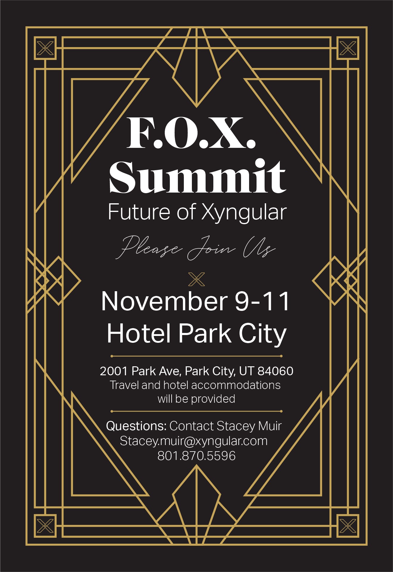 I developed two complete invitation concepts, one grounded in the event’s location and another inspired by art-deco styling with bold geometric elements and elegant typography. By presenting an elevated creative option that aligned more strongly with the event’s tone, the art-deco version was selected as the final printed piece. The result provided Xyngular with a striking, celebratory invitation that helped establish the summit’s visual identity.